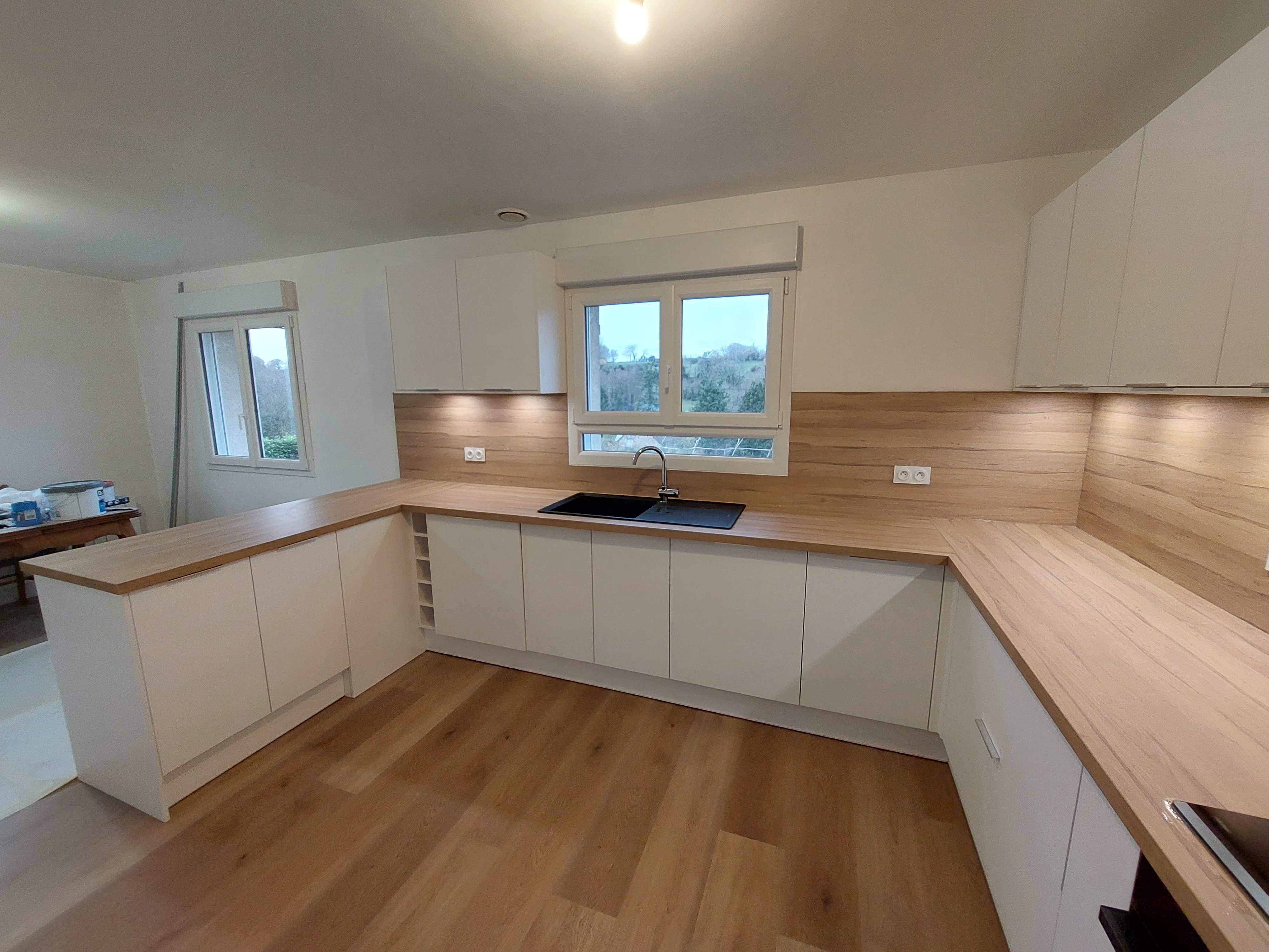 Très belle prestation concernant la mise en oeuvre d’un faux plafond et d’un agencement placo devant recevoir une nouvelle cuisine..